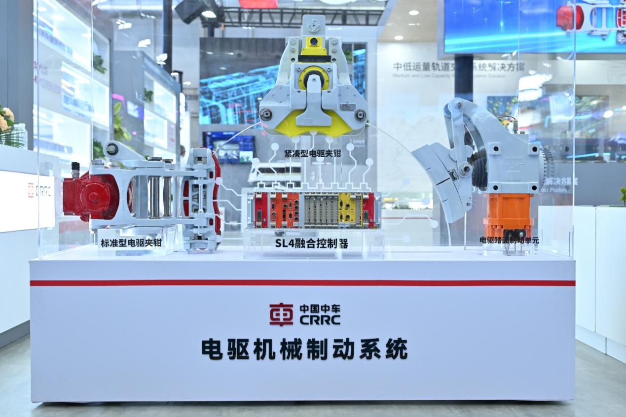 智能化电驱机械制动系统是具有代际特征的全电驱、智能化、高性能新型制动系统,以电能直驱取代了传统的压缩空气驱动模式,彻底解决了制动系统介质泄漏、维护复杂等运用痛点,实现了全电气化,具有响应灵敏、控制性能优、冗余度高、智能化水平高、重量轻等特点,制动响应时间同比缩短约40%,整体减重超过15%,关键部件100%智能化自诊断。