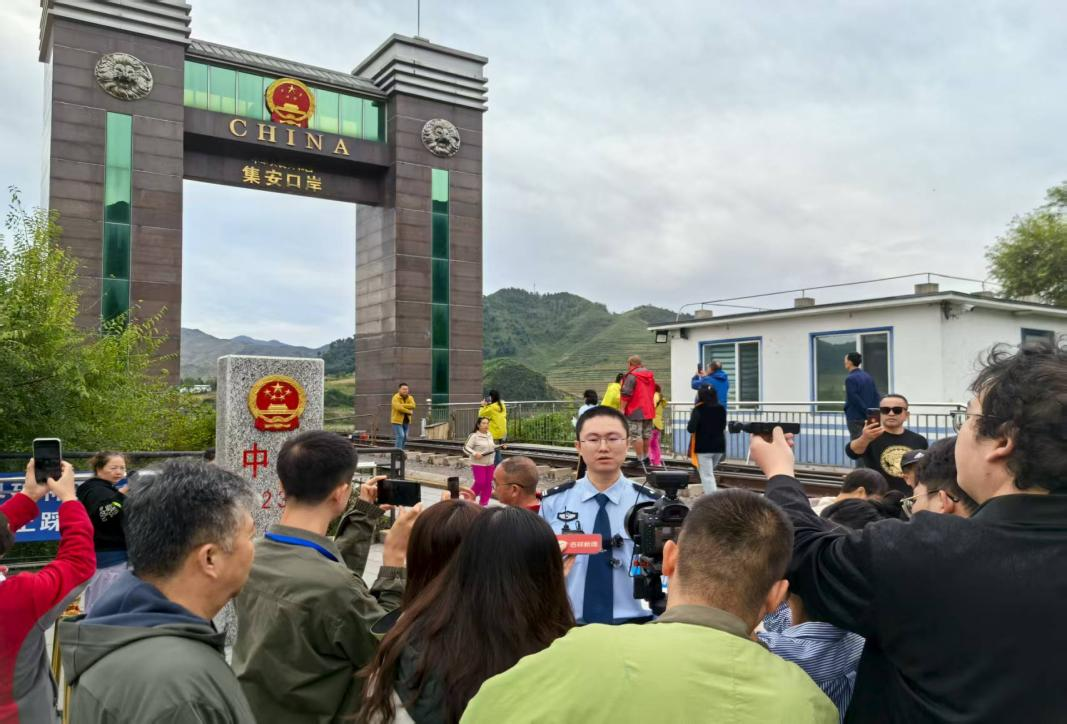 采风团前往鸭绿江国门景区进行采访