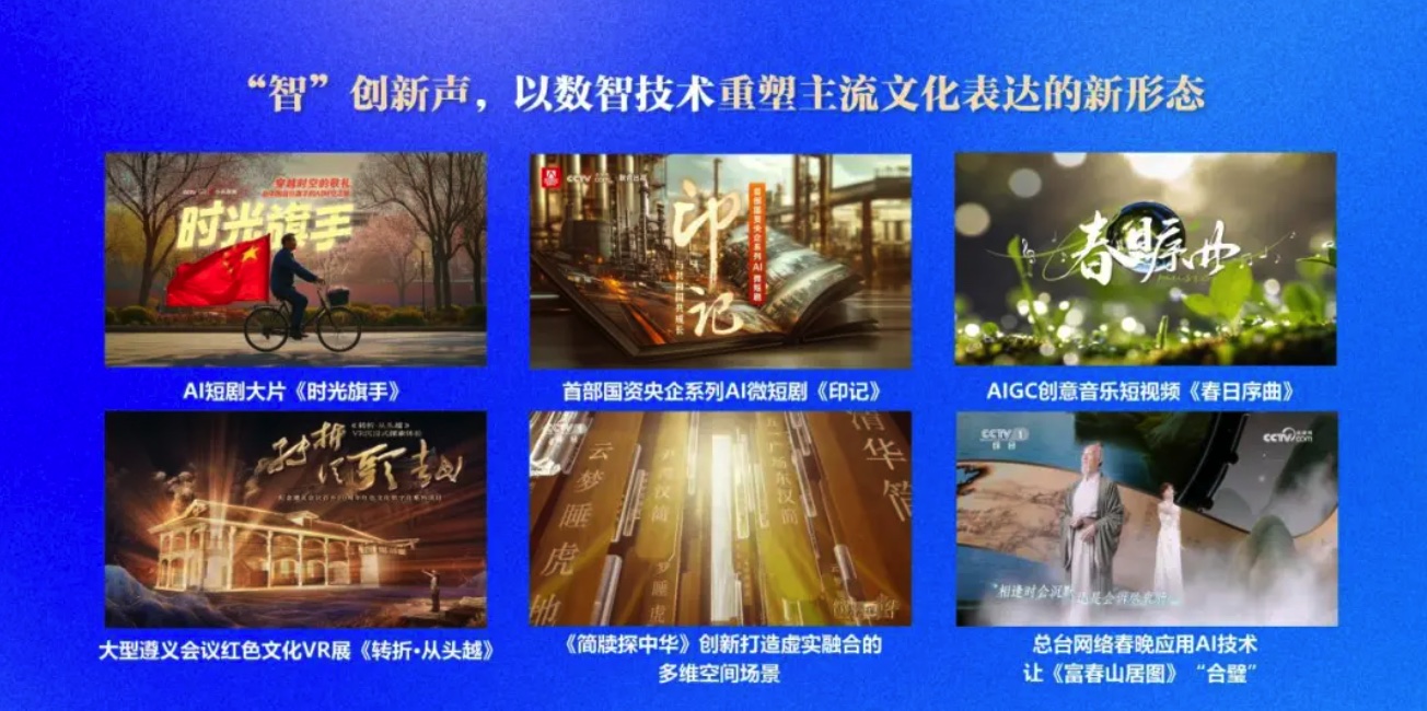 事实上,在智能传播领域,总台持续产出紧跟时代的探索成果:从《千秋诗颂》《来龙去脉》《中国神话》等多部生成式AI作品,到《CMG世界机器人技能大赛》《赢在AI+》《中国·AI盛典》等融媒体活动……在这场文化与科技融合的双向奔赴中,总台不仅是记录者、传播者,同样是实践者、推动者。